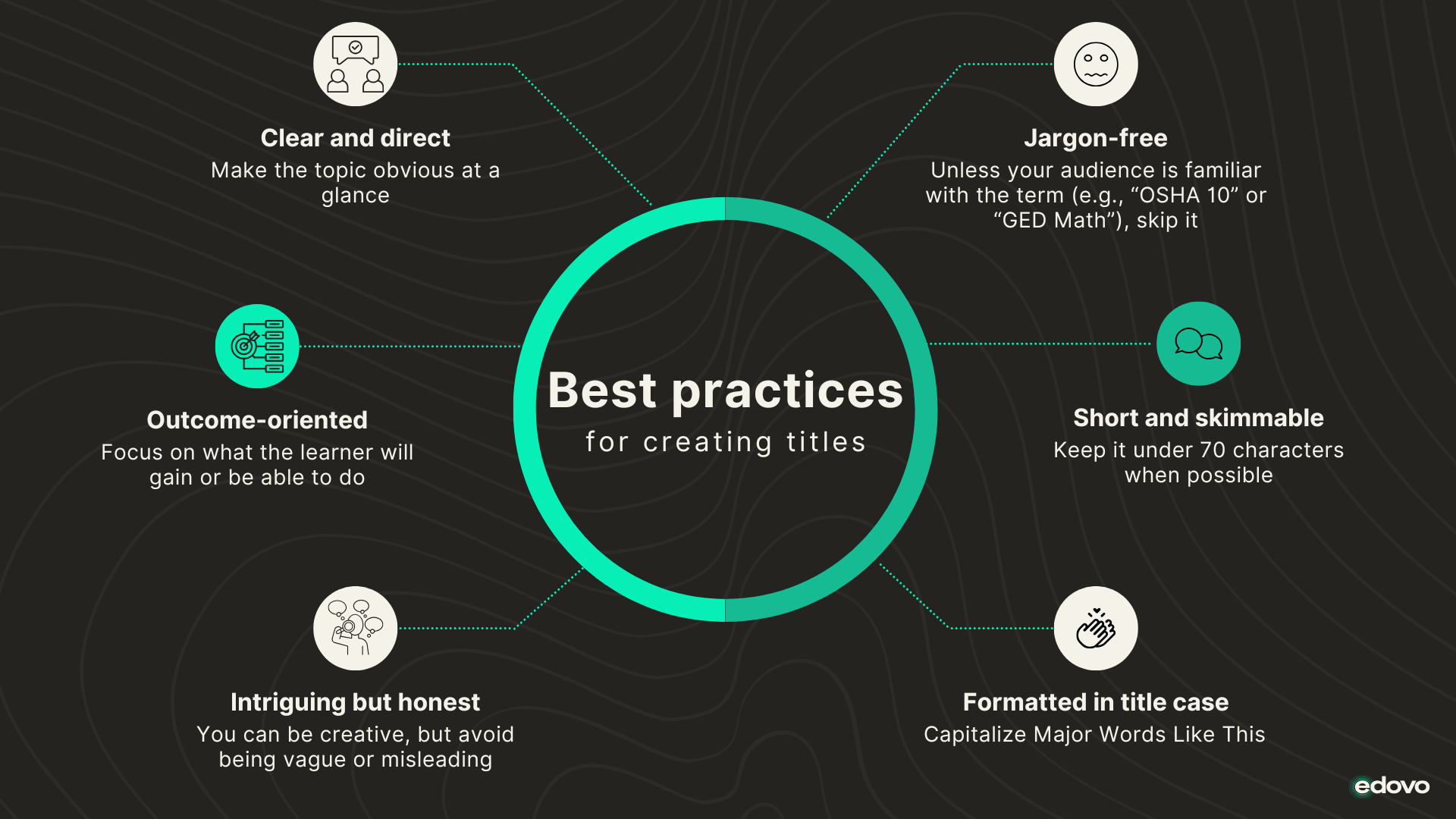 A great title does two jobs: it tells the learner what to expect and makes them want to click. Aim for titles that are: