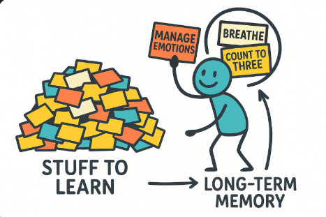 Here’s what the science says: our brains hold onto information best when it’s delivered in small, meaningful bites, especially if there’s an emotional hook and a moment to process.