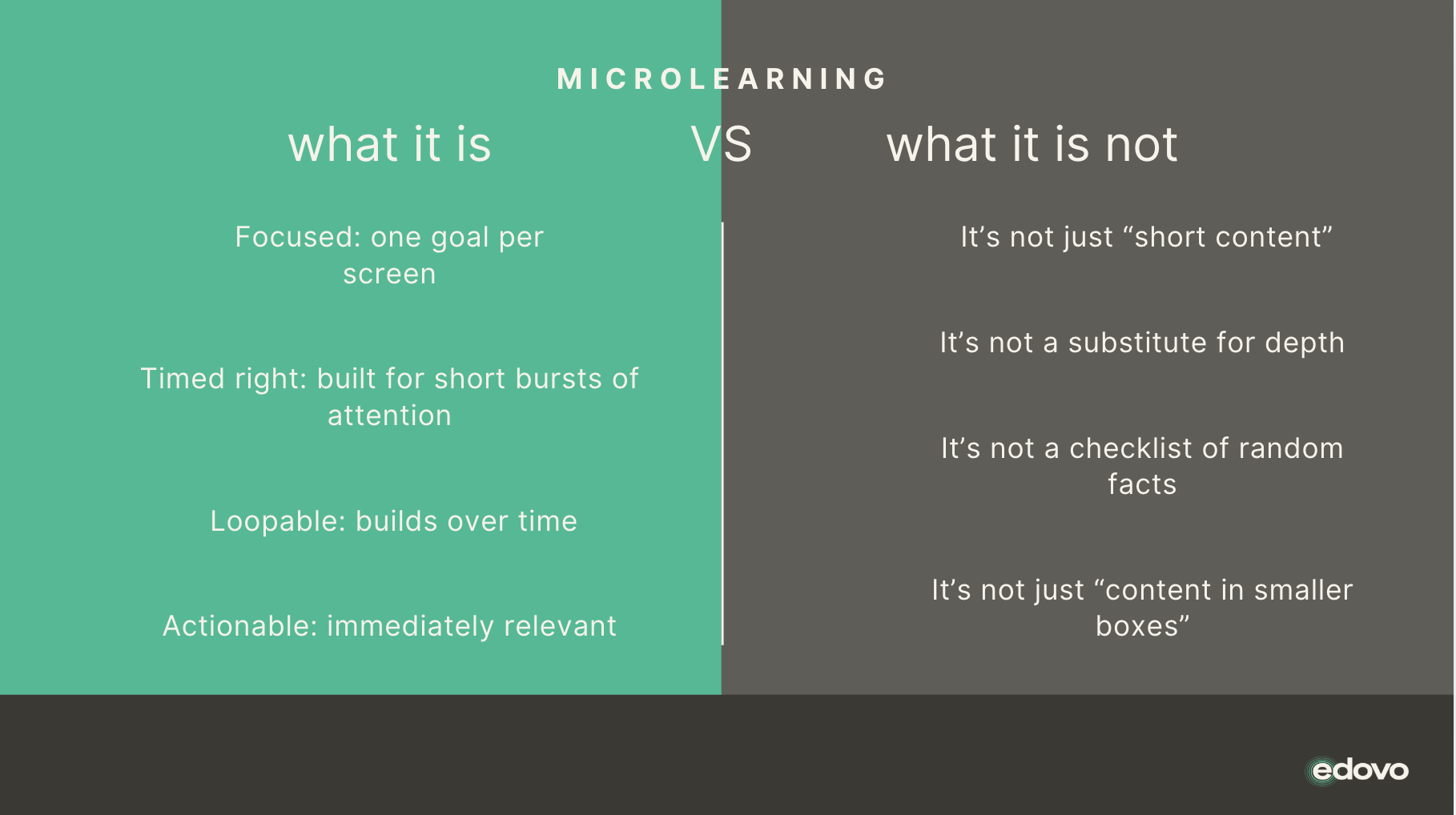 Bottom line: Microlearning isn’t just short. It’s short with a job to do.