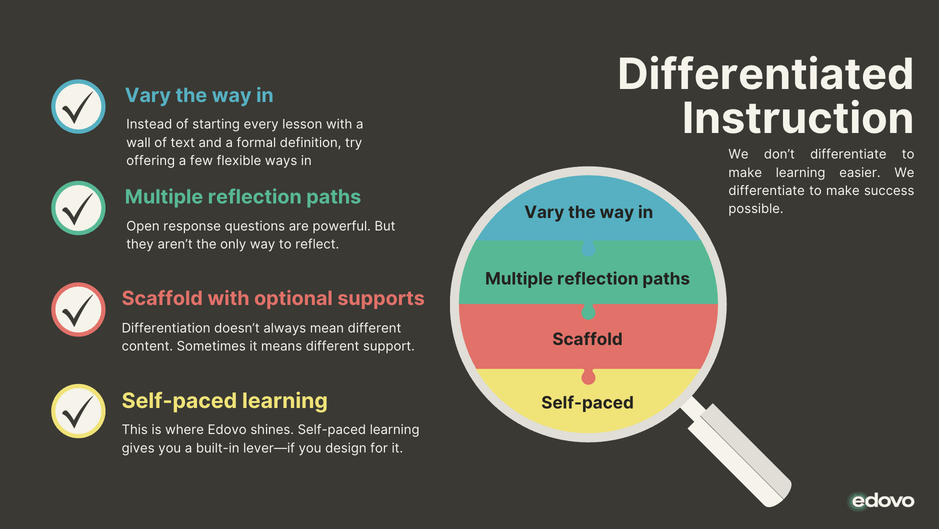 We don’t differentiate to make learning easier.