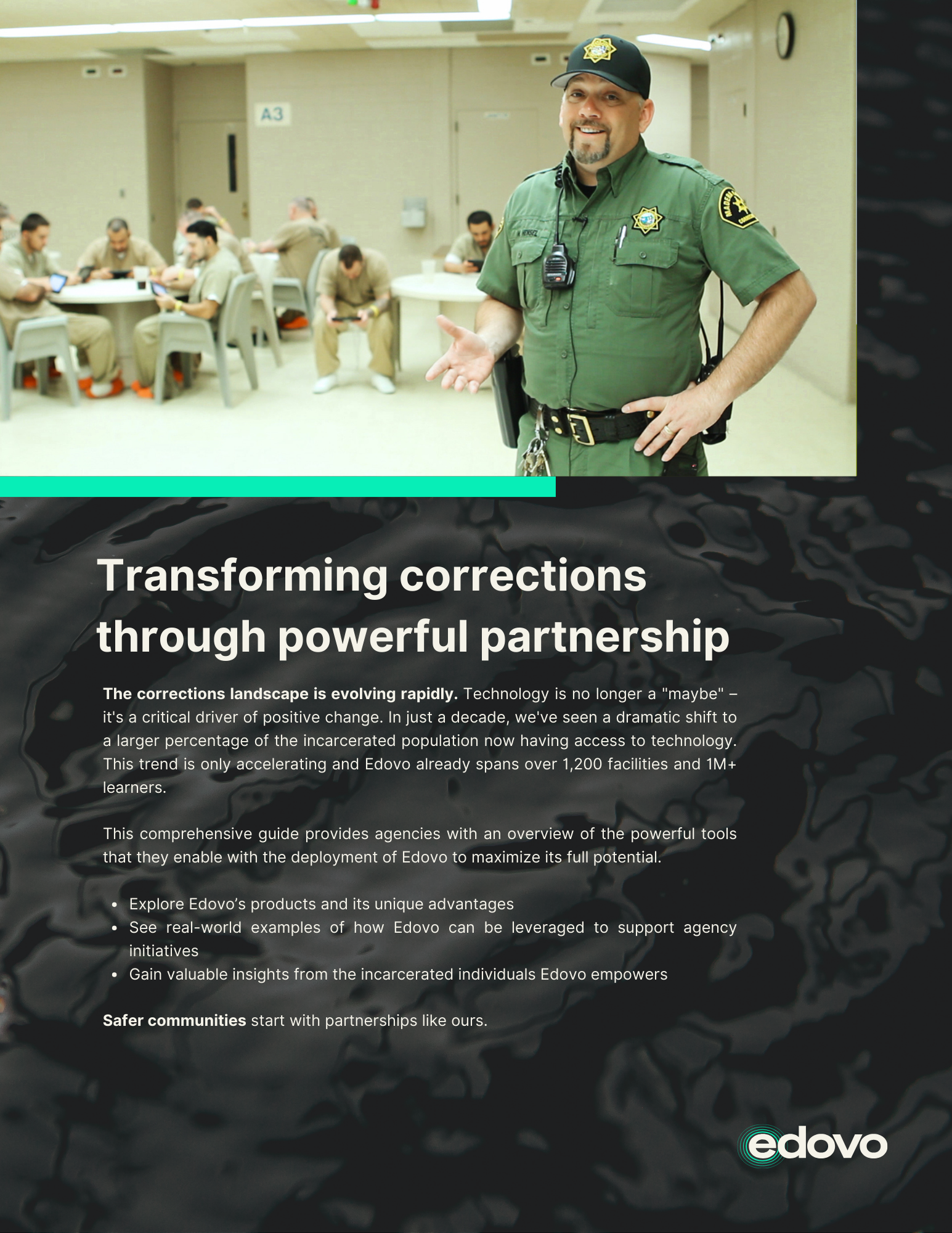 Edovo was designed with both incarcerated individuals and correctional staff in mind. Traditionally, facilities have relied on physical workbooks, classroom, peer-led tutoring, and staff and volunteer-led learning opportunities. These efforts are ...