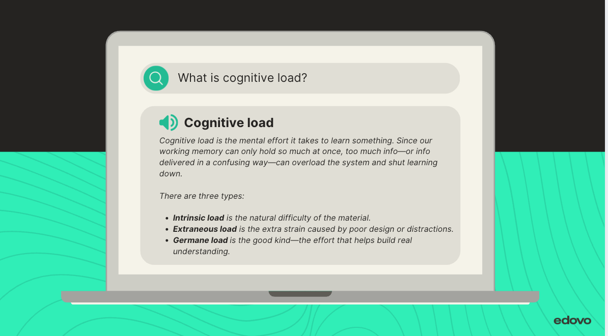 Cognitive load is the mental effort learning requires—and working memory is limited